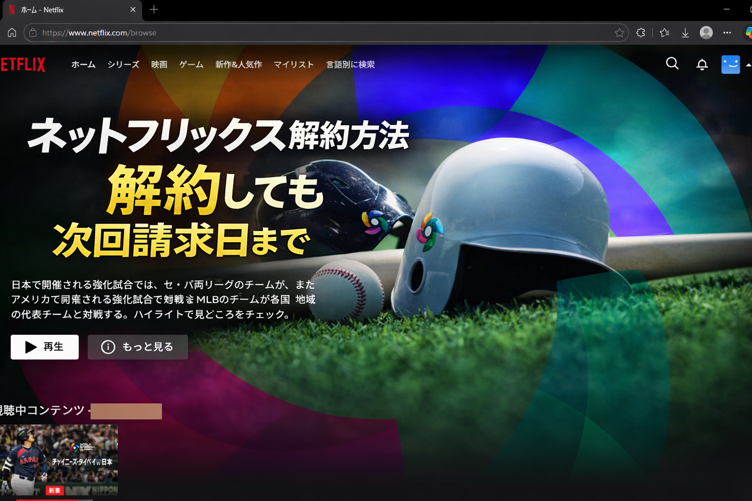 今回、2026年のWBCがNetflix独占配信ということで、私も久しぶりに契約しました。